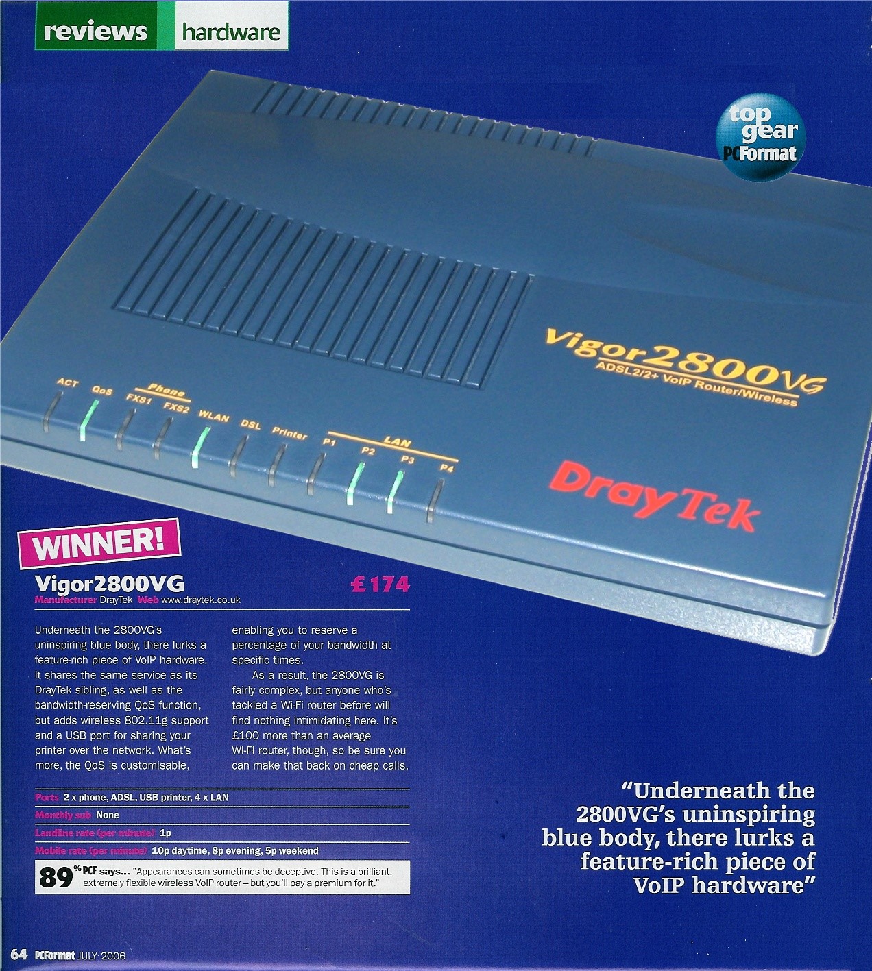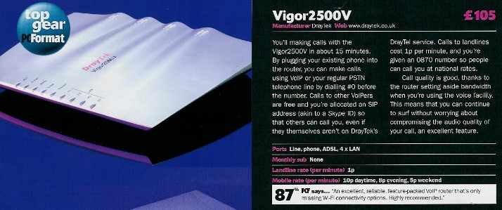 Vigor 2500 获得七月份PC Format 杂志 TOP GEAR 推荐