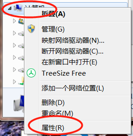 首先打开文件管理器,在左边找到“计算机”,或者“我的电脑”图标,右键,选择属性