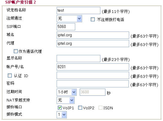 输入您的SIP注册服务器域名(或IP地址),以及帐号名称和密码。