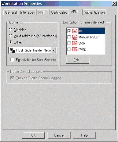 一、 Vigor的配置: 1.基本设置(Common Settings): a.输入Profile Name. b. 选择 "Enable this Profile". c. 选择 Dial-Out,Idle Timeout 选项设为0,这样可以始终维持IPSec隧道的开通直到远端拨入端发出终止命令。如果选择Always on, 那只要连接一中断路由器就会自动重拨。 2. 拨出设置(Dial-Out Settings): a. 选择IPSec 模式。 b. 输入远端VPN server的IP地址/主机名字。 c. 输入IKE Pre-shared 值。 d. 选择IPSec 安全模式: 高(ESP)。 4. TCP/IP网络设置(TCP/IP Network Settings): 输入远端局域网内网IP地址及其网关。 二、Check Point settings: 1.定义 Network Objects,输入VPN的IP地址,子网掩码。 2.两边的VPN都要进行上述操作。 3.为每一个VPN gateway 创建或修改Workstation Network Objects 添加VPN 配制参数。 4.单击VPN tab ,修改 VPN的定义 单击 " Other "修改 Encryption Domain 并为此gateway的 encryption domain.添加 Network Object。 5.单击 " IKE " 来编辑Encryption Scheme,选择3DES (或 DES ) SHA1、 MD5、 Pre-Shared Secret. 取消对 " Supports Aggressive Mode "的选定。 6.编辑其他的VPN gateway 。 7.单击VPN tab来修改 VPN定义。 单击" Other "来修改Encryption Domain,并为此 gateway的encryption domain添加 Network Object。 8.单击 " IKE " 来编辑Encryption Scheme,选择3DES (或 DES ) SHA1、 MD5、 Pre-Shared Secret. 取消对 "Supports Aggressive Mode"的选定。 9.单击 Edit Secrets 来添加 Pre-Shared Secret. 10.单击 " Edit ". 输入 secret然后单击 " Set " 11.两个主机之间的 Pre-Shared Secret将不再被改动 ,你仍然需要在Vigot2900V VPN配制里设置相关参数。 12.配制 Firewall Rules,允许 IPSec encryption. 定义firewall policies:允许 encryption domains之间的 IPSec encryption 。你需要定义encryption domain network rules,选择action to Encrypt。 在本例中,我们开启encryption domains中的所有服务。 13.双击Encrypt Action来编辑IPSec rules. 14.单击IKE 、 "Edit"来编辑 IPSec rules.选择 ESP, 3DES (或 DES) , SHA1. On " Allowed Peer Gateway " 最后一个选项填Vigor_Gateway. 15.重复以上步骤来编辑其它的 IPSec/encrypt rules. 修改 Security Association Timeframe,在进行 IKE Security Association与Check Point VPN-1以及 IKE Security Association与 Vigor Gateways的重新协商时,timeframes的默认设置是不一样的。这些参数已不需要修改也不用被禁止。为了安全起见还是将这些参数设置为和 timeframes一致。在本例中,我们将Check Point的设置改为和 Vigor的一样。 在Check Point Policy编辑器重,选择 Encryption tab of the Policy / Properties Setup.修改 the IKE Security Association time为 480 minutes (8 hours) 使其与 Nokia的设置一致, IPSec timeframes 的默认之为 (3600 seconds, 即 1 hour)。 到此 完成了Check Point VPN gateway的设置。