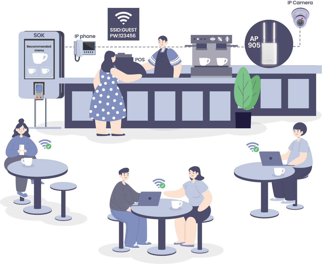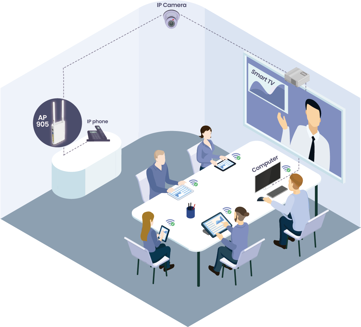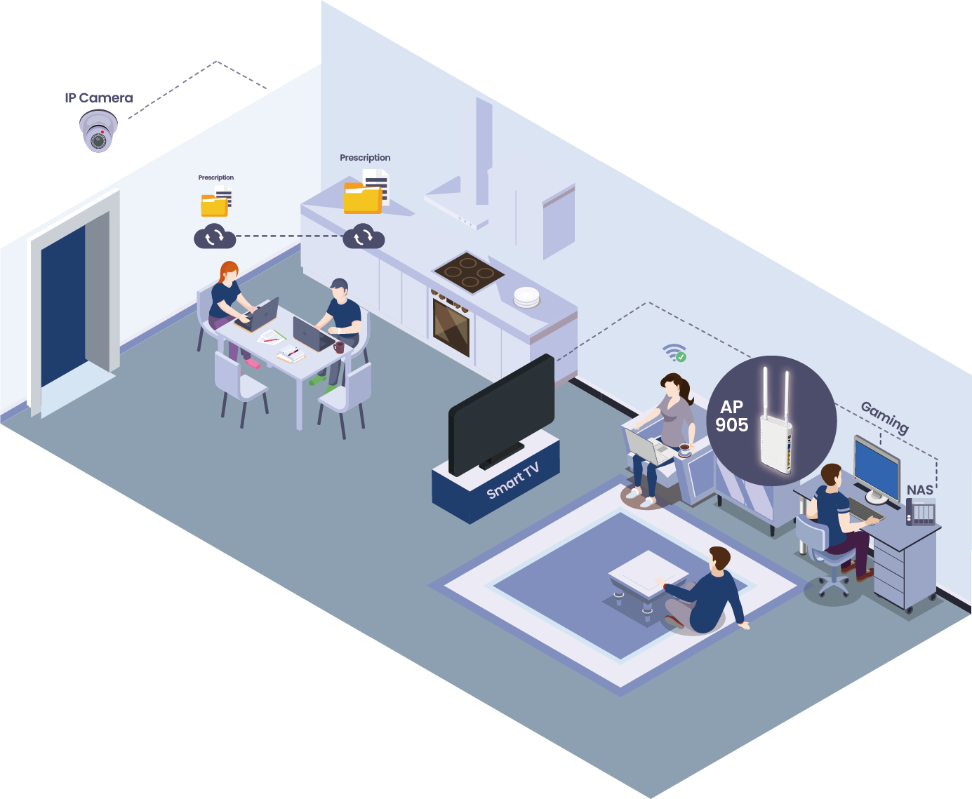 VigorAP 905 配备 1x2.5GbE 和 4x1GbE LAN 端口,提供高速和标准以太网连接的平衡组合。