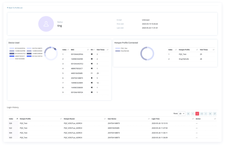 提供有关登录方式、登录设备、连接热点和登录历史的客户端洞察。
