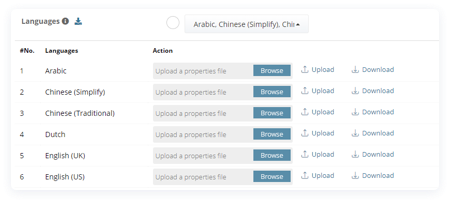 | 多语言 | 否,仅支持单语言。 | 是,上传语言翻译文件以支持多语言。 |